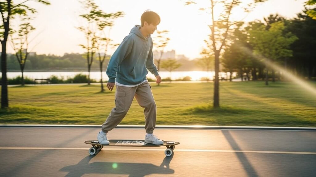 - 롱보드: 보통 90cm~120cm로 길고 넓습니다. 덕분에 발을 편하게 올릴 수 있고, 속도가 붙어도 안정감이 탁월해요!