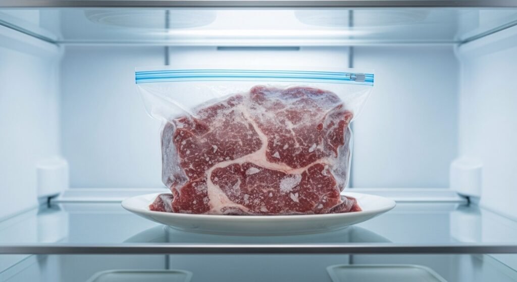 고기를 냉동실에 넣기 전, 지퍼백에 최대한 얇고 평평하게 펼쳐 얼리면 해동 시간이 획기적으로 줄어듭니다. 다진 고기나 불고깃감에 특히 유효합니다.