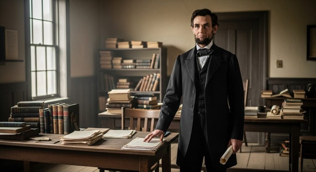 1809년 켄터키주 외딴곳의 가난한 통나무집에서 태어나, 어린 시절 어머니를 여의는 등 어려운 환경 속에서 자랐어요. 정규 교육은 모두 합쳐 1년 미만에 불과했지만,