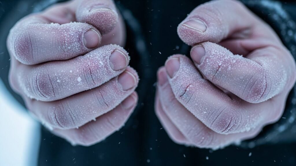 처음 2~3분: 노출된 피부 부위에서 동상이 시작돼요. 특히 코, 귀, 뺨, 손가락 끝이 가장 먼저 타격을 받아요. 이 단계에서는 아직 되돌릴 수 있어요.