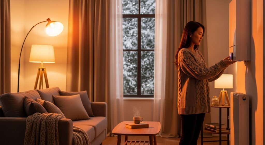 - 보일러(중앙 난방): 집 전체를 따뜻하게 할 때는 보일러가 유리합니다. 18~20°C로 설정하고, 내복이나 두꺼운 실내복, 수면 양말 등으로 **’체온 보완’**을 해주세요.