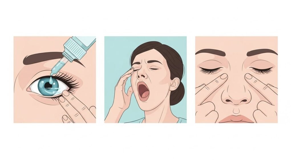 - 따뜻한 찜질: 눈 주변 혈액 순환을 돕고 눈물 분비샘의 기능을 활발하게 합니다.